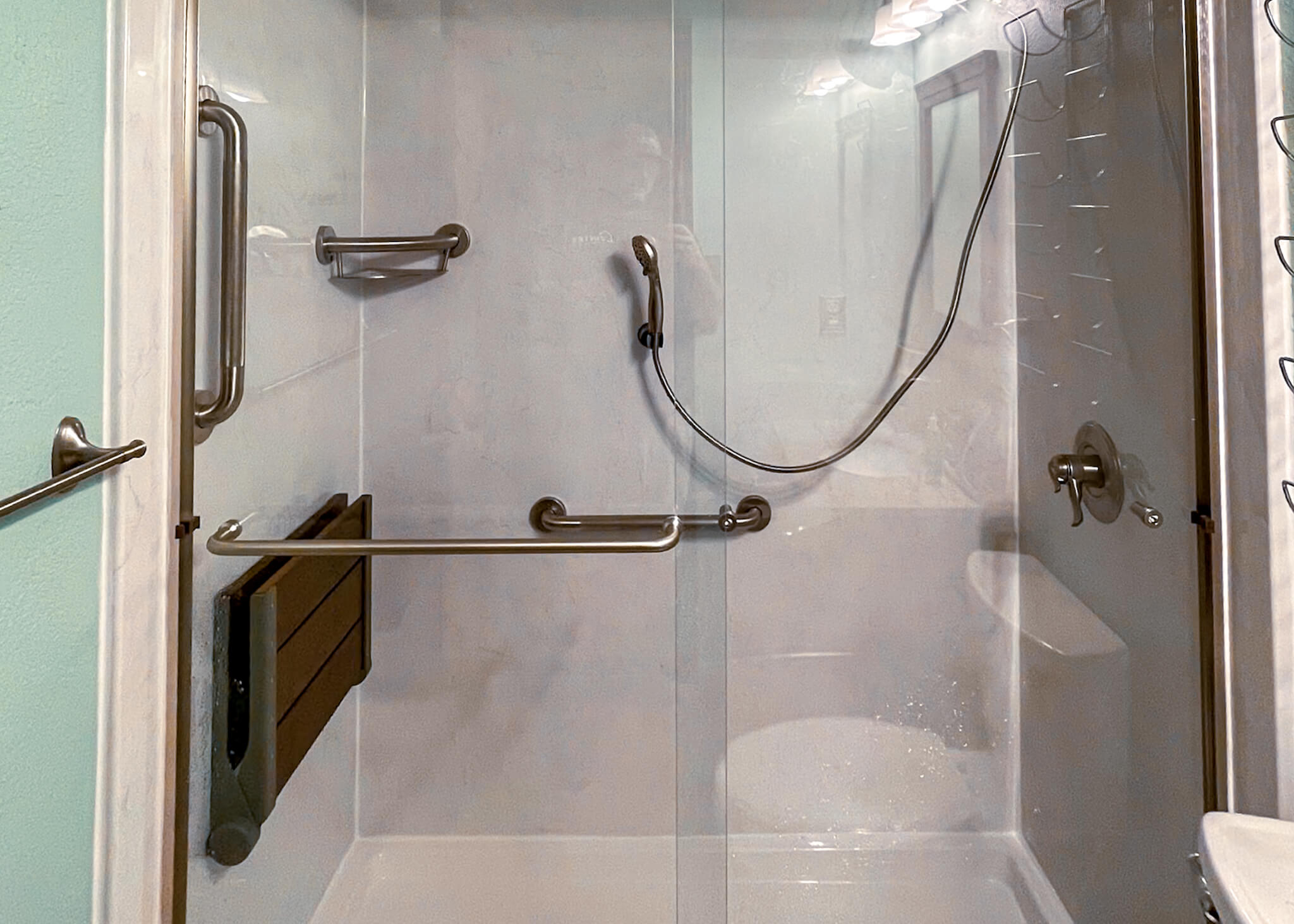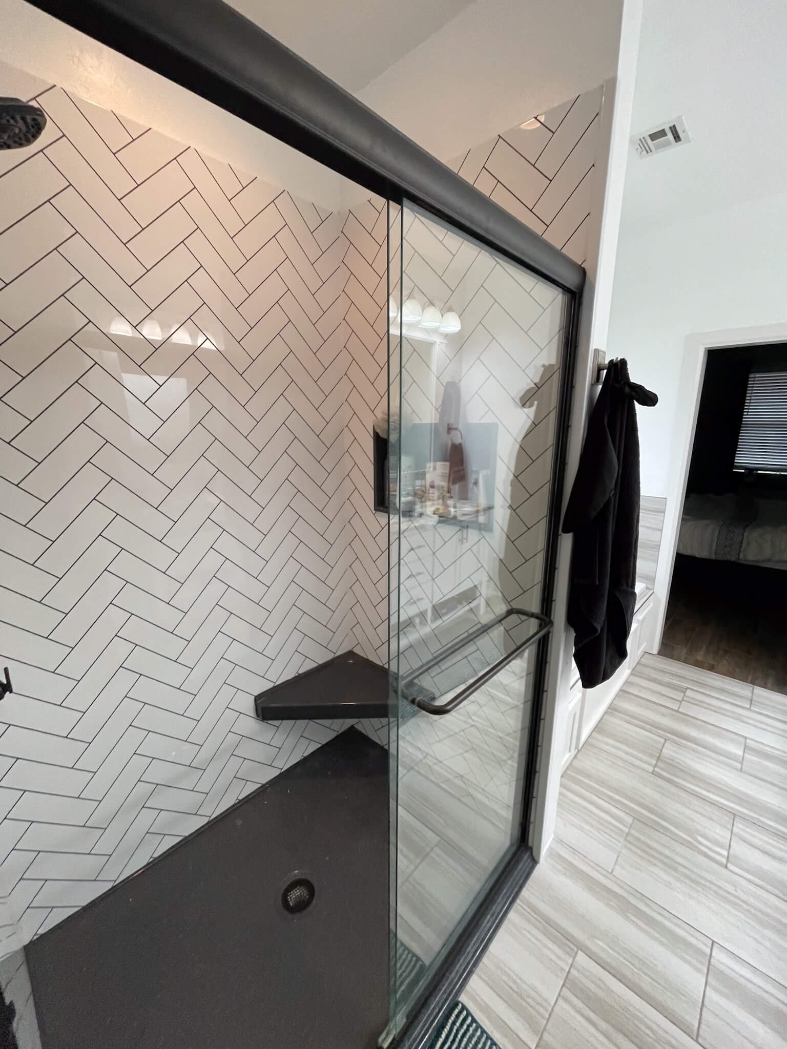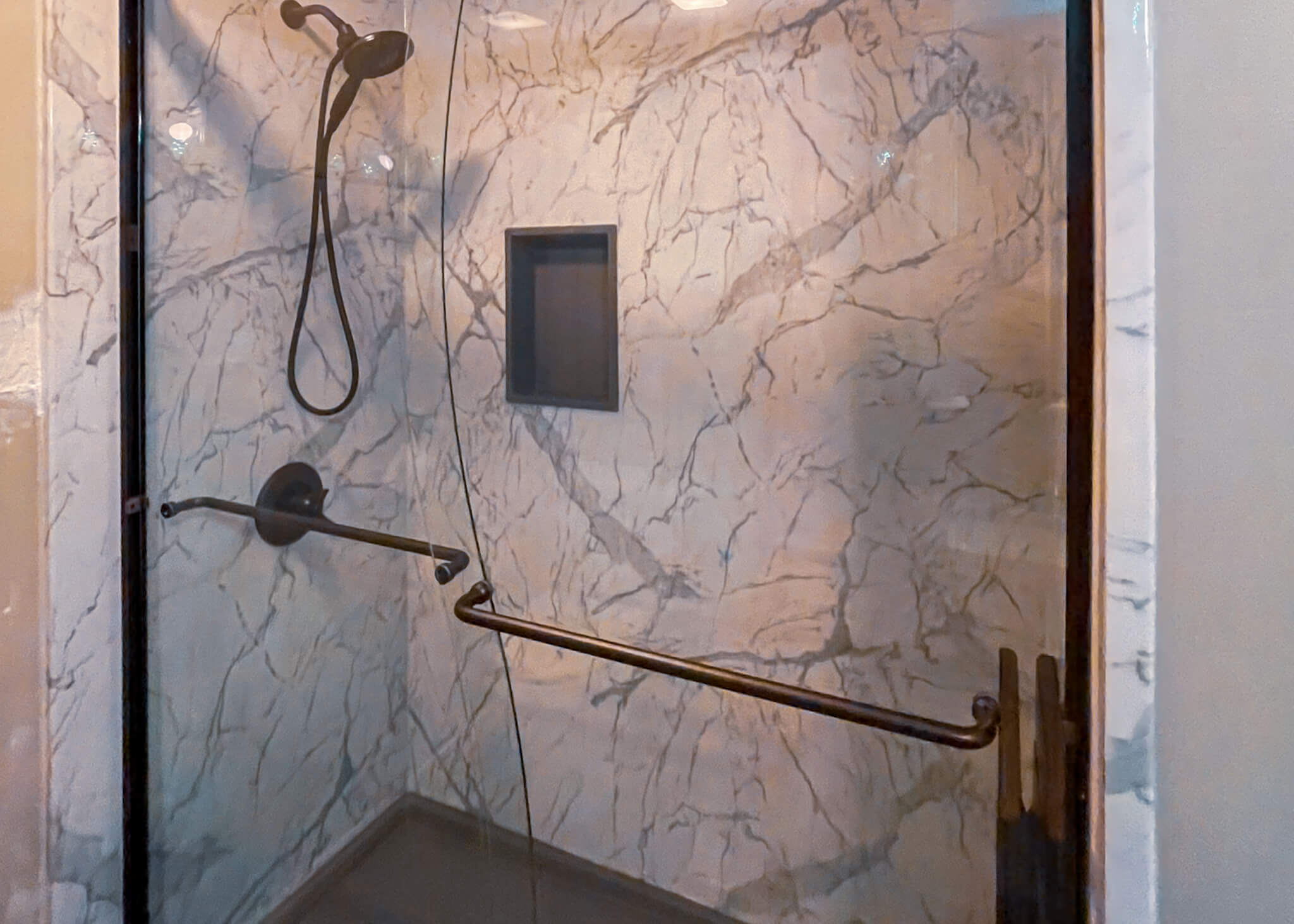 "beautiful new walk in shower"